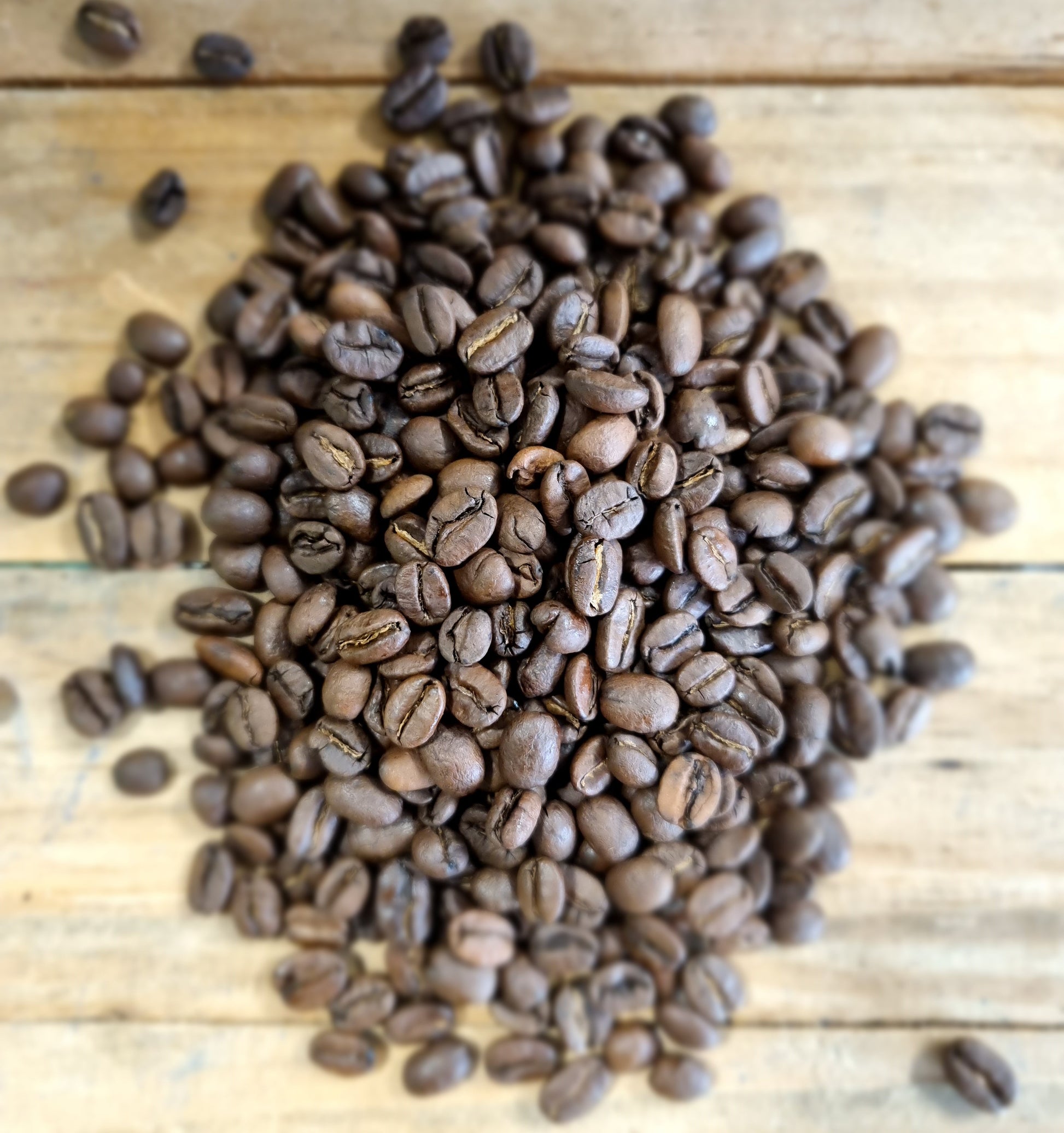 Nutty, sweet, and smooth, blend of washed arabica beans from Brazil, Columbia and Uganda, roasted to a medium-dark finish